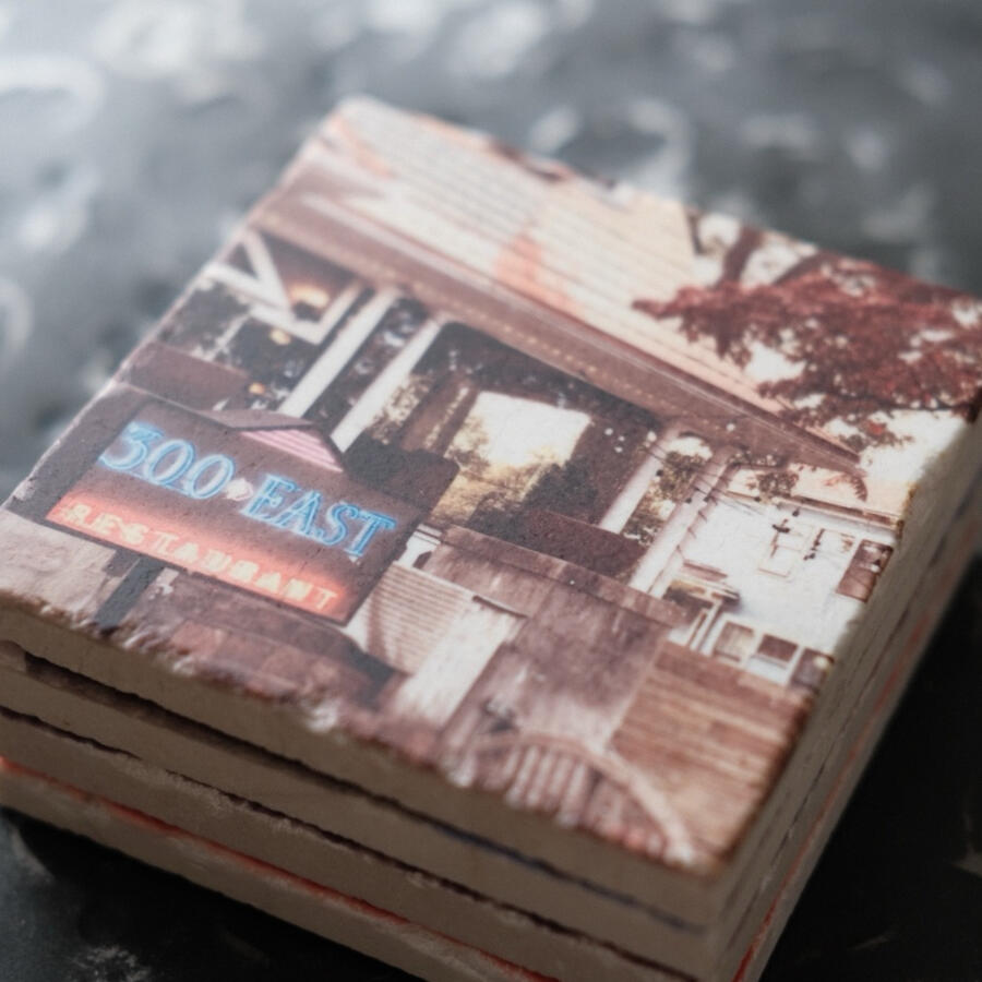 The classic: Everyone loves a logo, it's clean, simple, and to the point. If someone buys a set of coasters, a logo will certainly be in the mix.